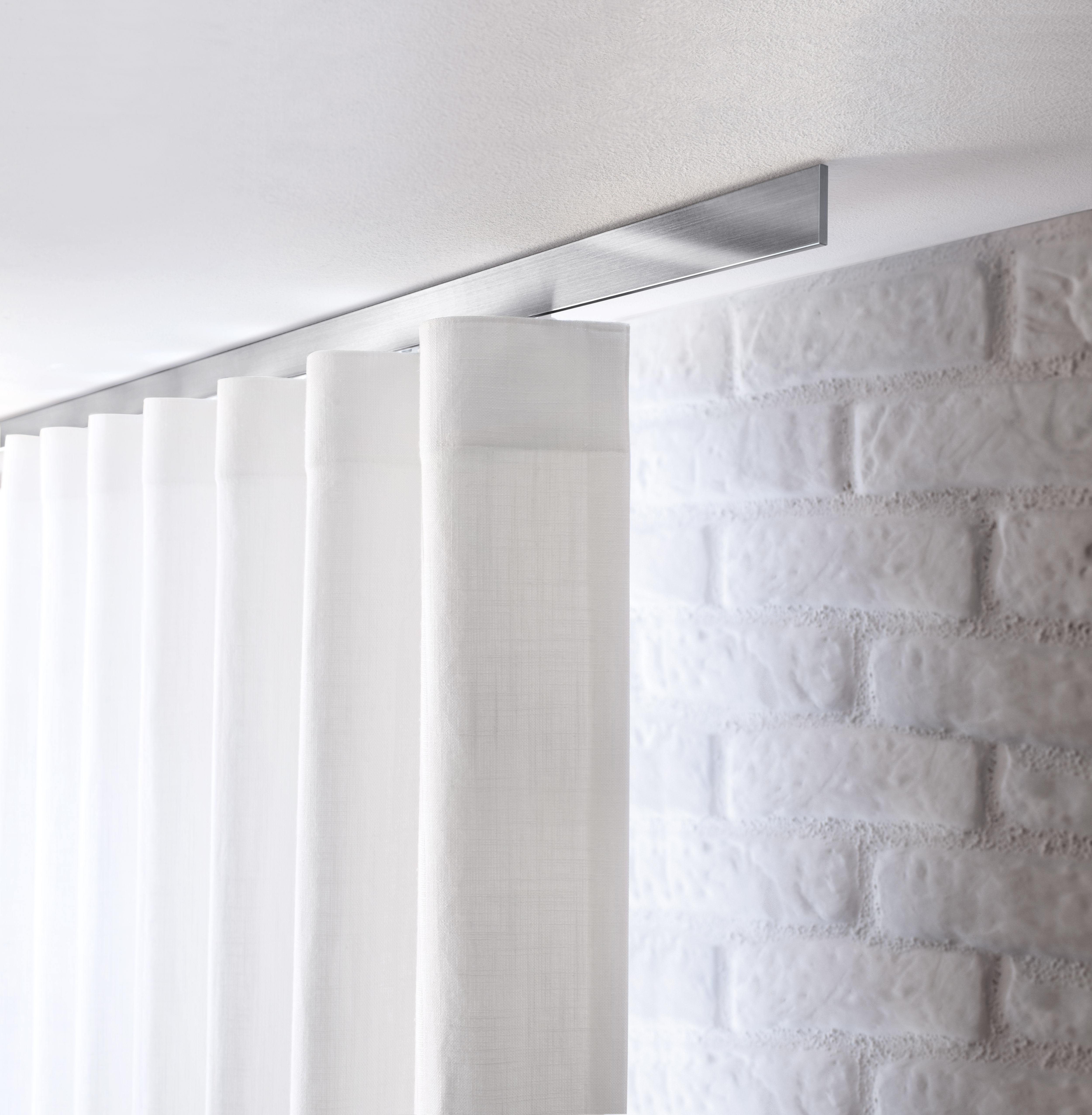 Eine geradlinige und gleichmäßige Optik ohne den Stoff zu kräuseln passt zu moderner Architektur, ist aber wesentlich wohnlicher als die sonst üblichen Flächenvorhänge.