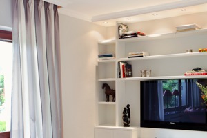 Für die Ricks-Wohnwelten-Folge vom 27.08.2005 hatten wir alle Hände voll zu tun. Ein Kellerraum wurde zu einem gemütlichen Schlafzimmer umgebaut. Für die notwendige Behaglichkeit sorgen ein flauschiger Teppichboden, gepolsterte Kopfteile des Bettes, diverse Kissen und nicht zuletzt halbtransparente Vorhänge.